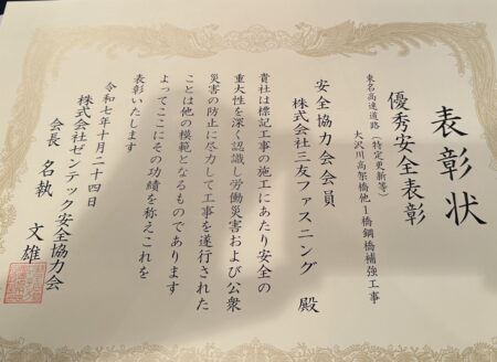株式会社ゼンテック様の安全大会に出席致しました。 優秀安全表彰を頂きました。ご安全に!